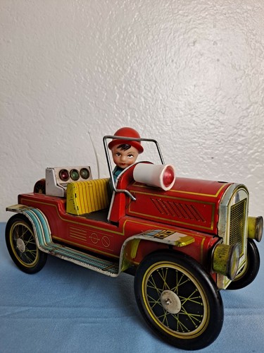 Vintage Tin Toy Me 699 Fire Chief Truck Battery Operated It Works Ebay